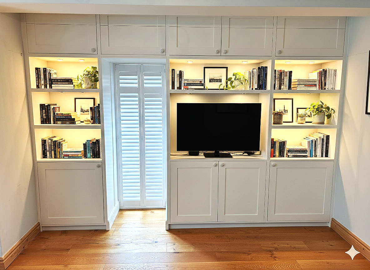 Create the perfect focal point with a bespoke media wall, tailored to your style and space. Whether you want a sleek modern design or a classic built-in look, I craft high-quality units to house your TV, fireplace, and storage seamlessly.